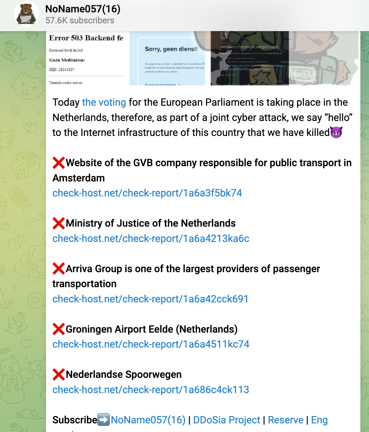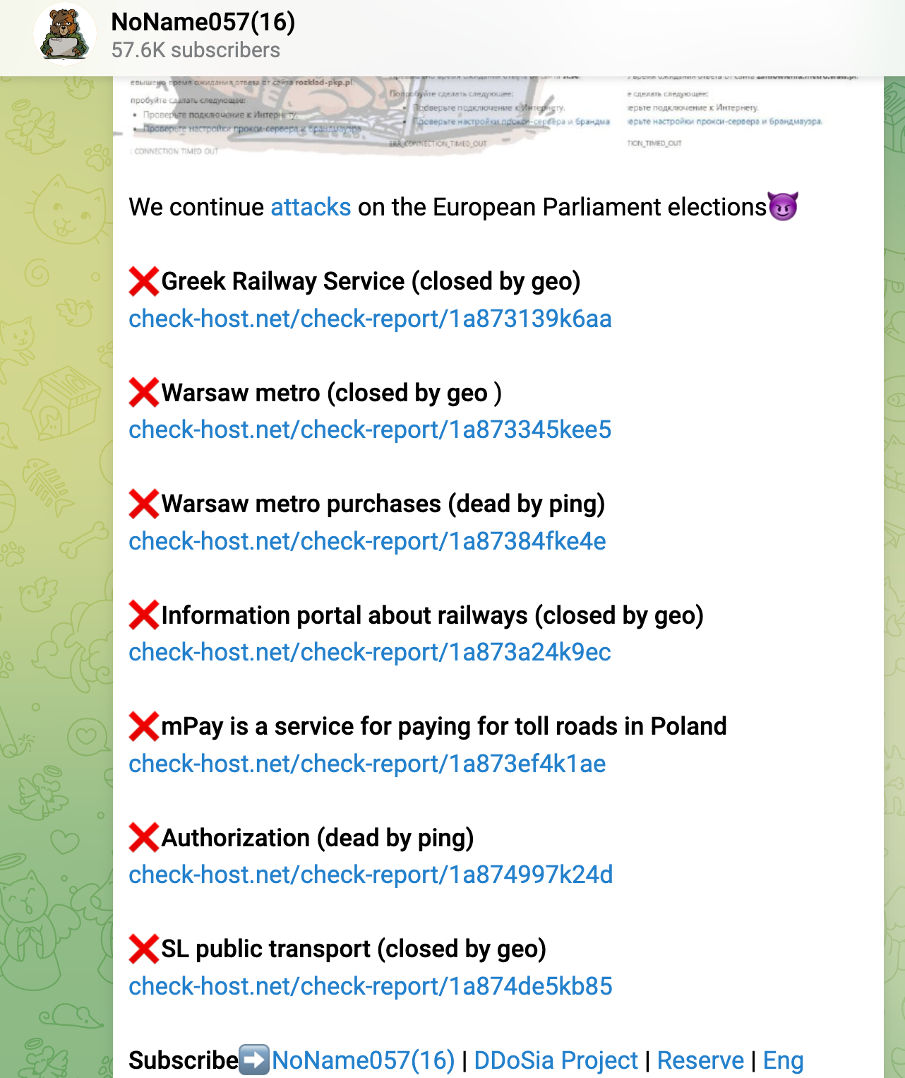 In the week before the European Elections early June 2024, a group of russian hacktivists announced a widespread campaign against european infrastructure