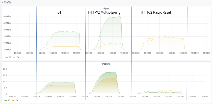 What is also notable: the Trafficpattern differs totally between HTTP/2 Multiplexing and HTTP/2 RapidReset.