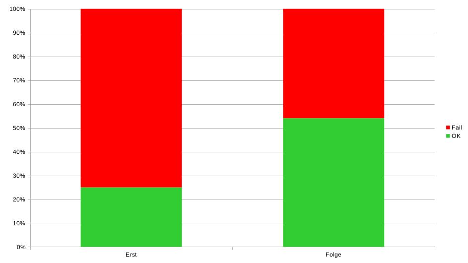 If all 3 passed, then an OK went into the evaluation. This also explains the discrepancy between the total tests carried out (408) and the sum according to the graph.